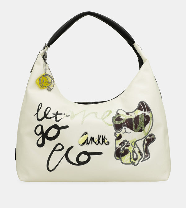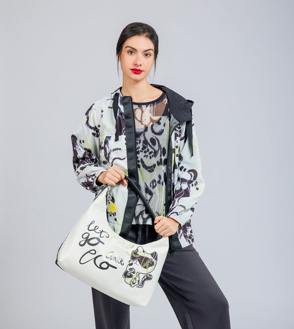 Această geantă de umăr originală de dimensiuni mari are o capacitate interioară mare. Se deschide cu fermoar și are căptușeală interioară și buzunare.