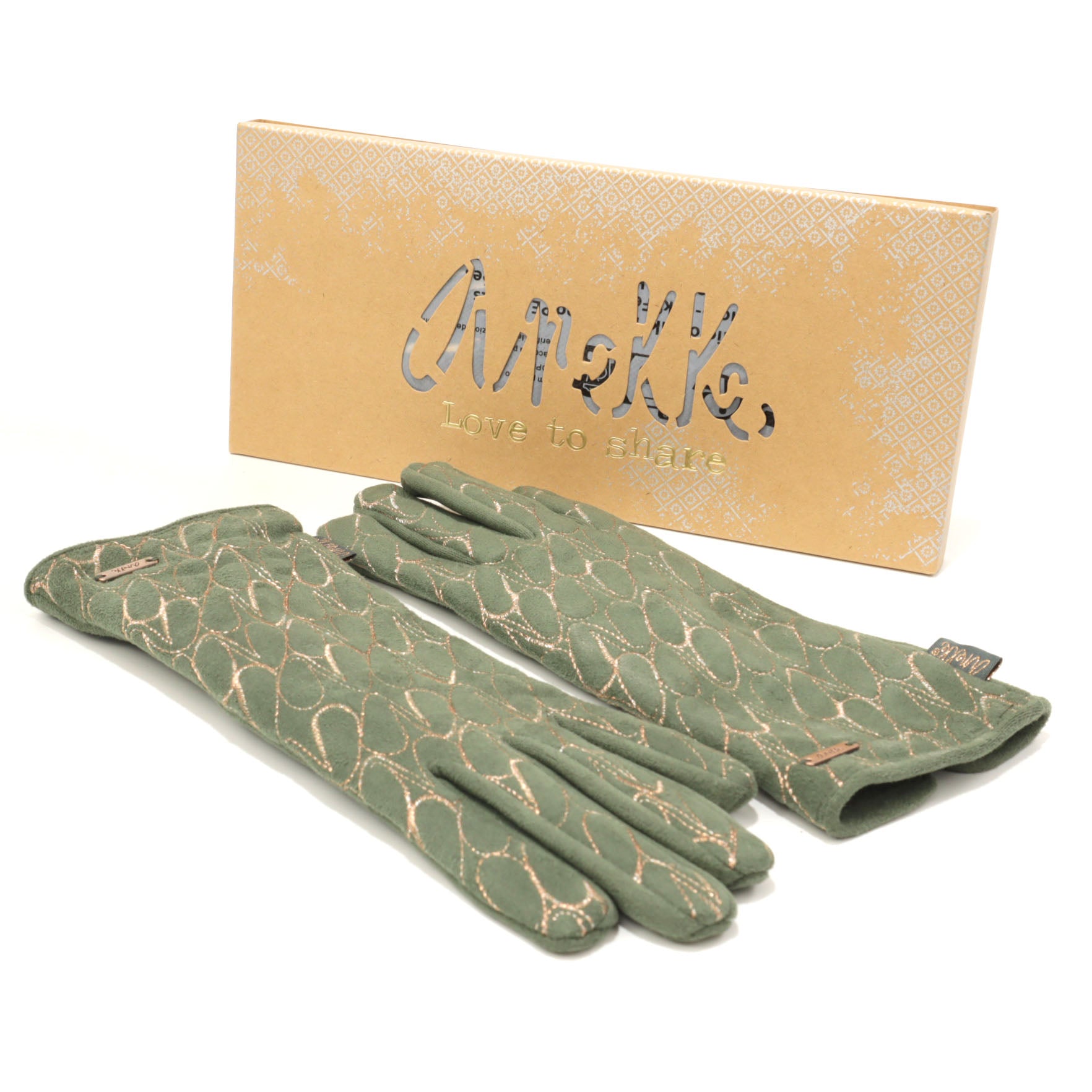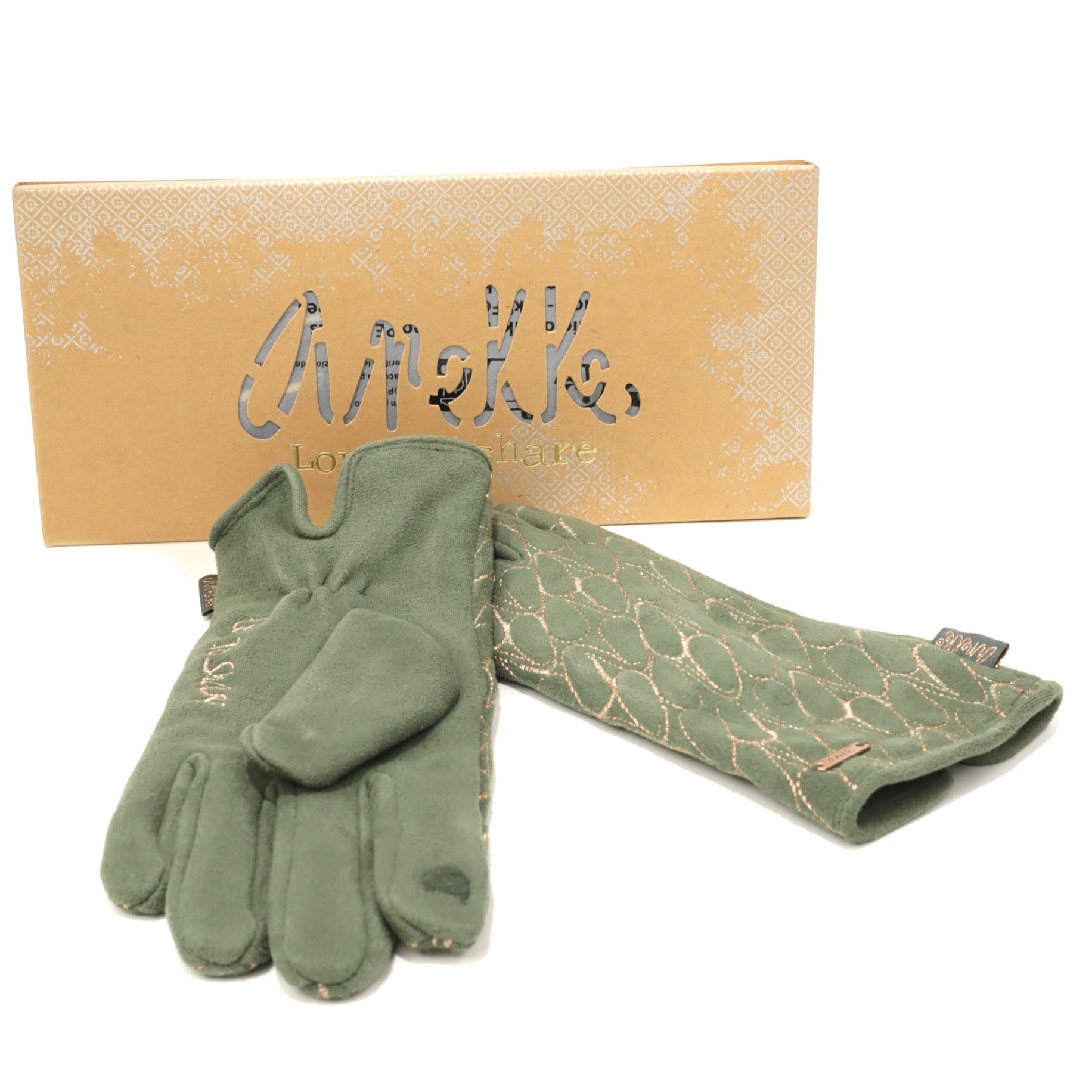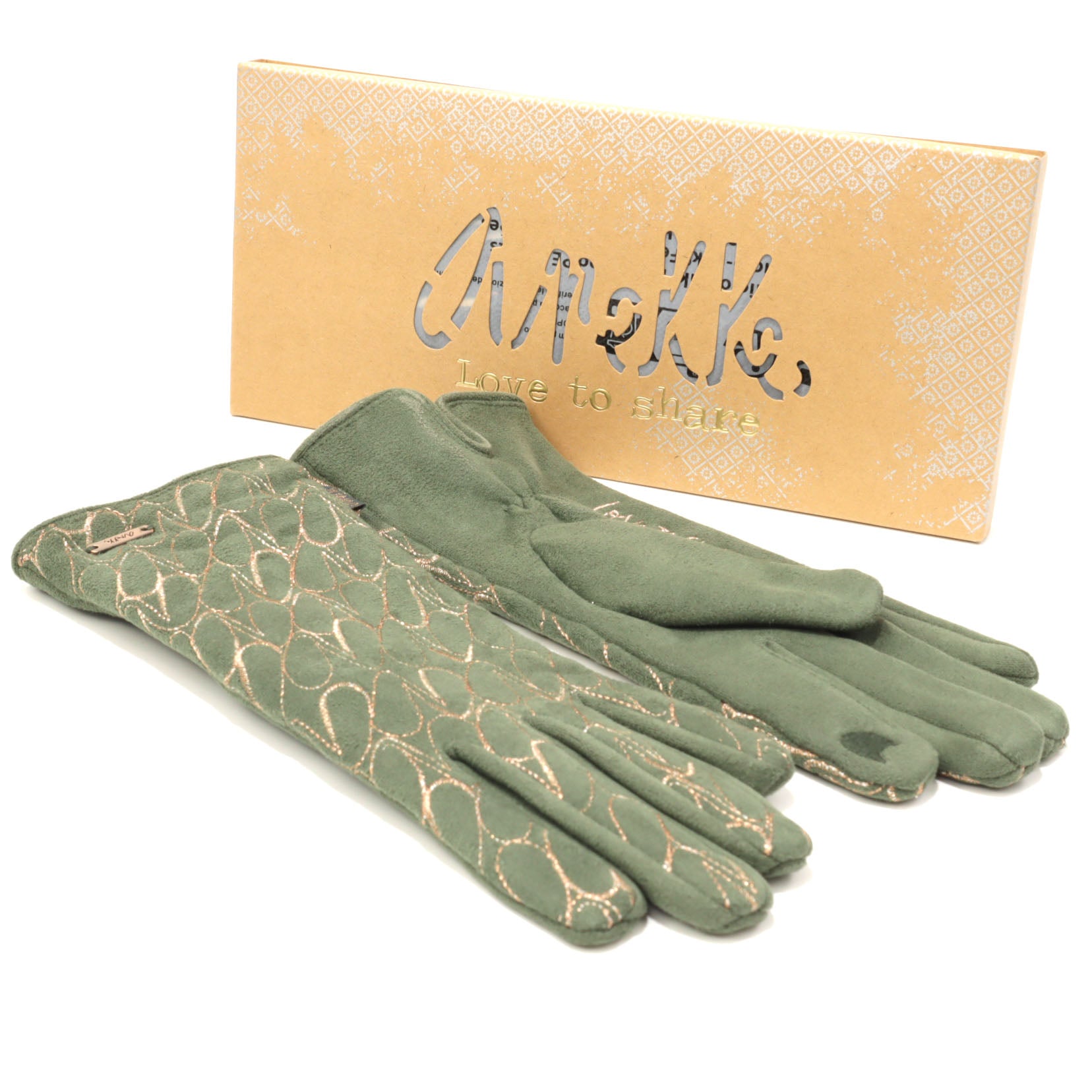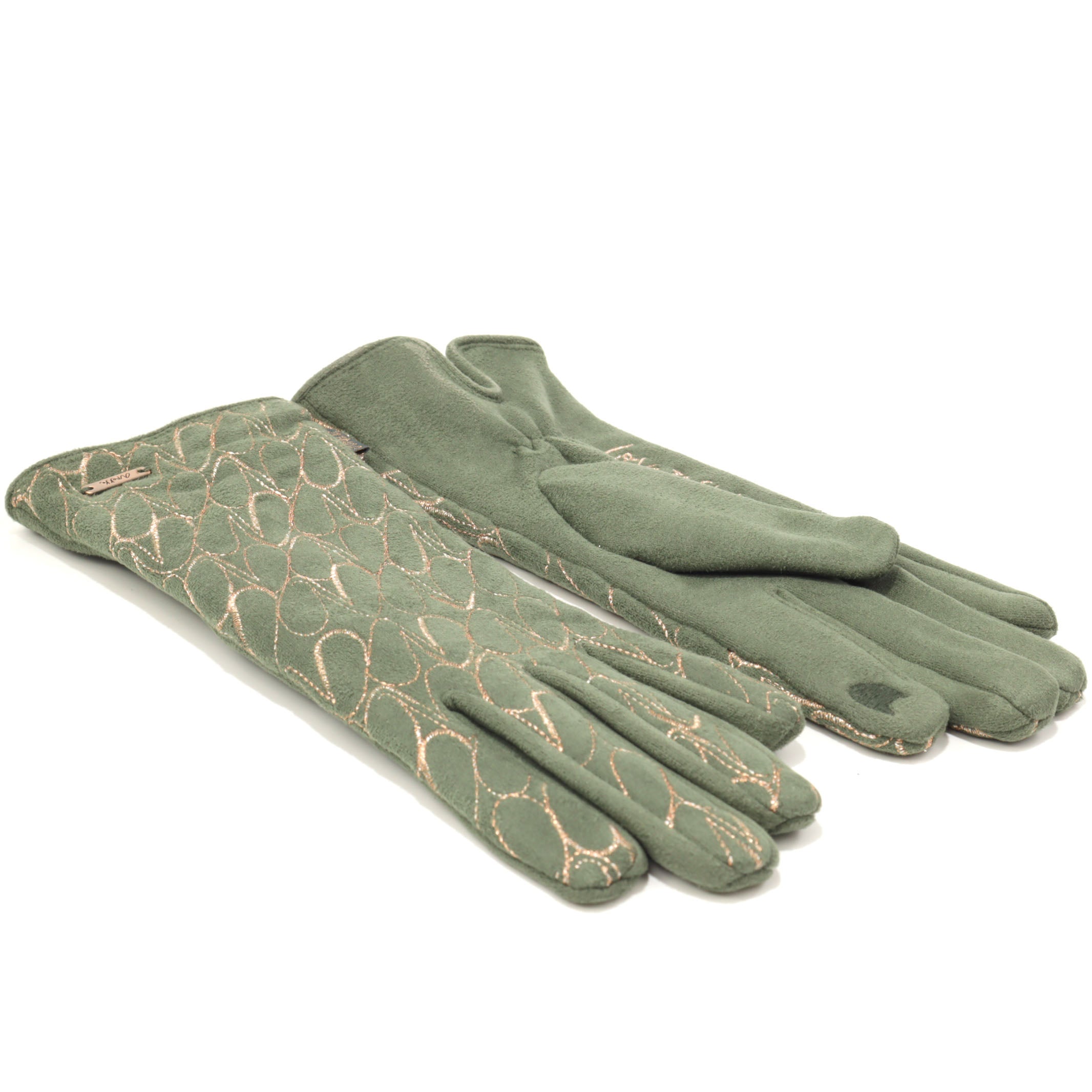 Este o pereche de mănuși pentru damă în nuanțe de verde, realizate din 100 % poliester, parte a sezonului de iarnă