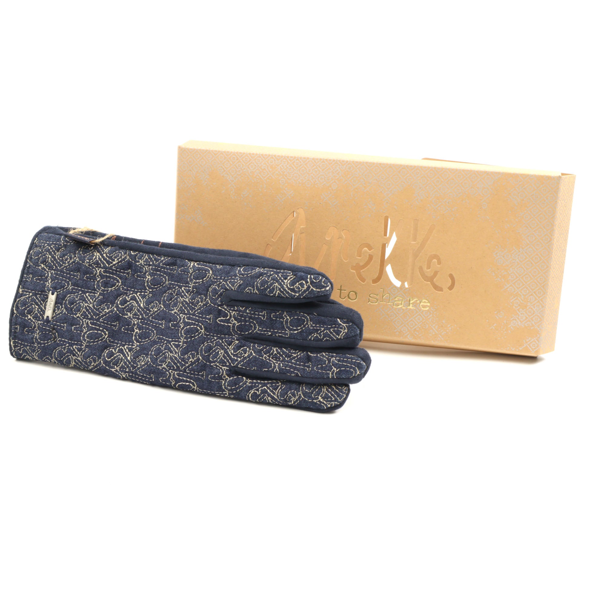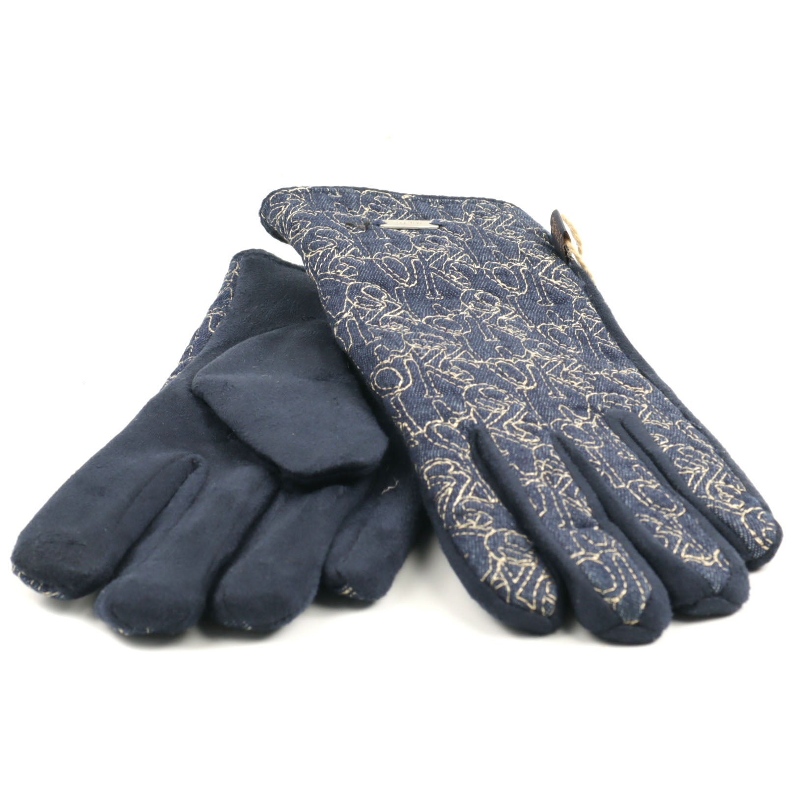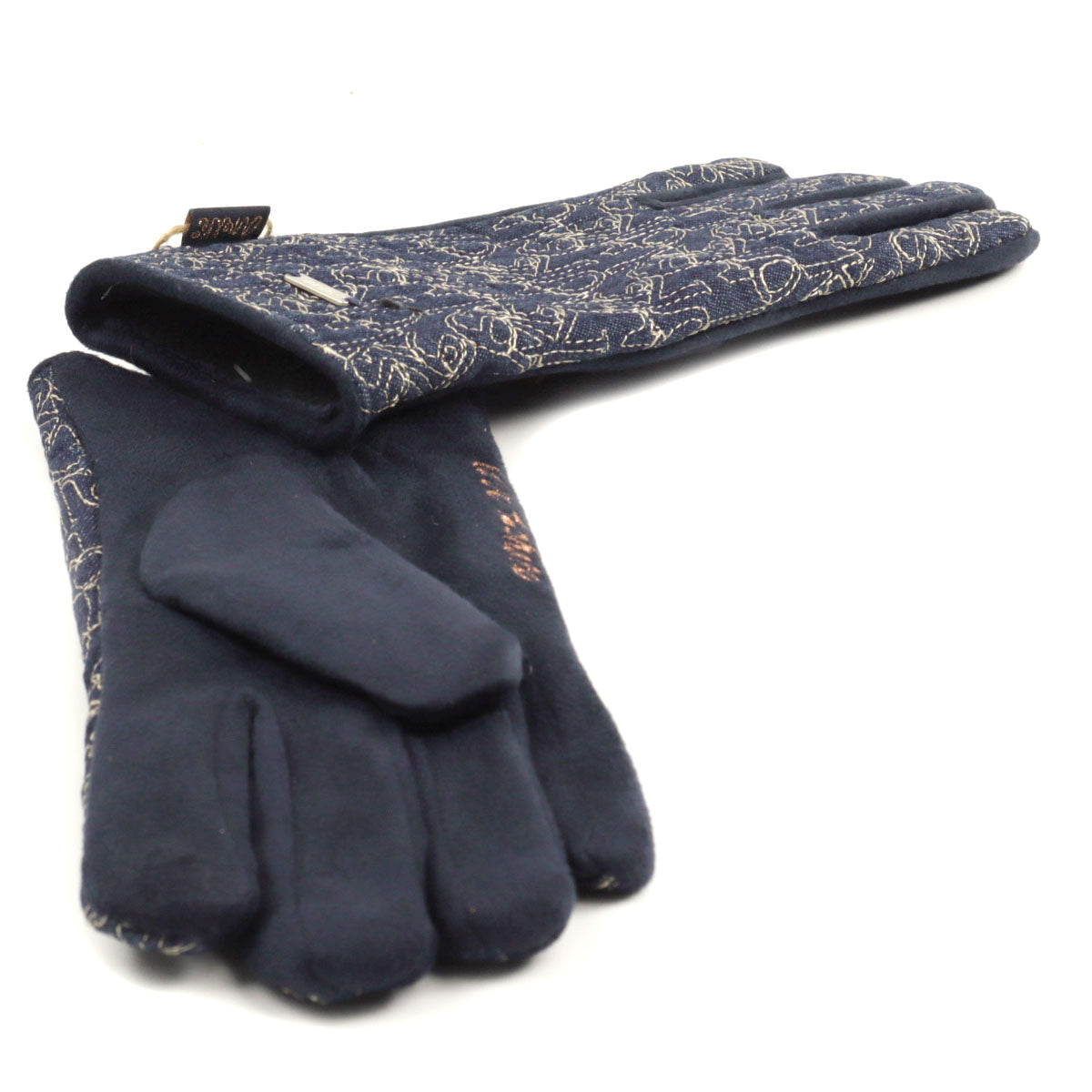 Este o pereche de mănuși pentru damă în nuanțe de bleumarin, realizate din 100 % poliester, parte a sezonului de iarnă
