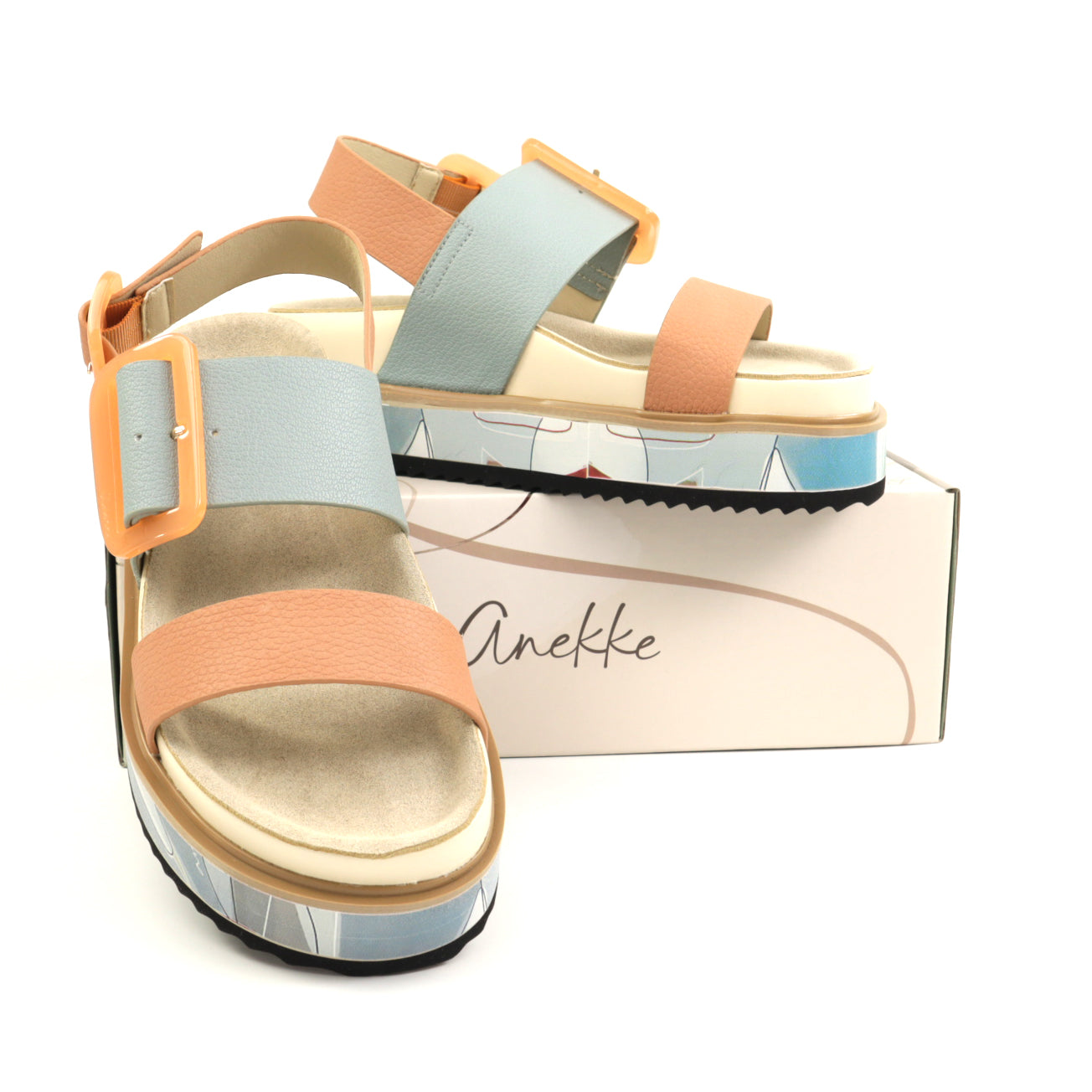 Aceste sandale Anekke combina un design de baza cu parti imprimate si nenumarate detalii unice. Talpa commoda asigura confort la fiecare pas, cu un vârf usor pentru mers usor si bareta reglabila pentru o potrivire mai buna. De asemenea, are un brant confortabil pentru un plus de confort.