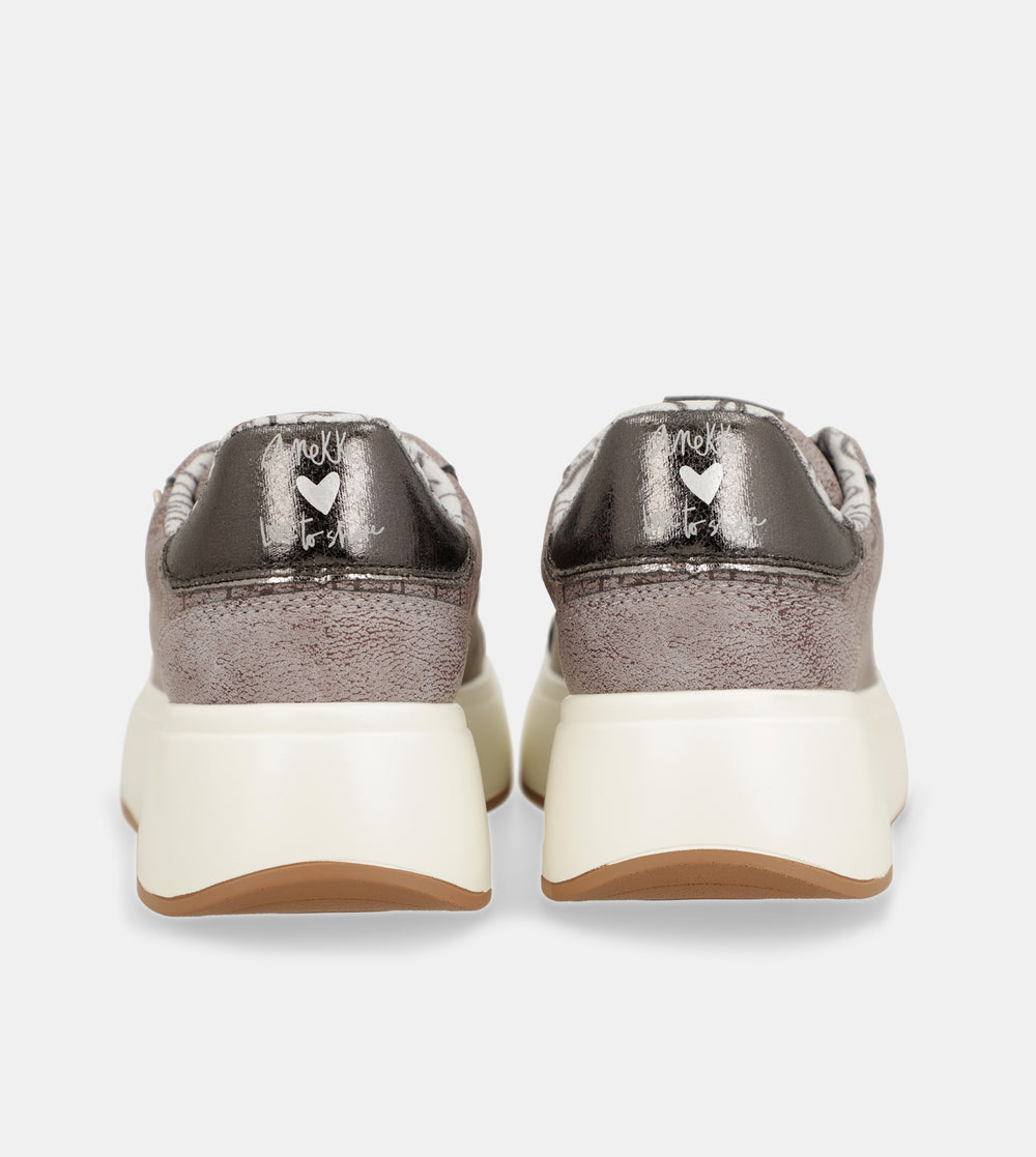 Designul original al acestui adidasi imprimat combina o baza cu diferite parti în care logo-ul Anekke este suprapus într-un ton brut, oferindu-i o nota originala de îmbatrânire. Este un sport plin de detalii cu un plus de confort, cu inchidere cu siret pentru a imbunatati potrivirea piciorului, talpa larga si platforma, ideala pentru amortizarea amprentei. In plus, brantul este captusit pentru un confort sporit. Captuseala interioara este plina de detalii imprimate.
