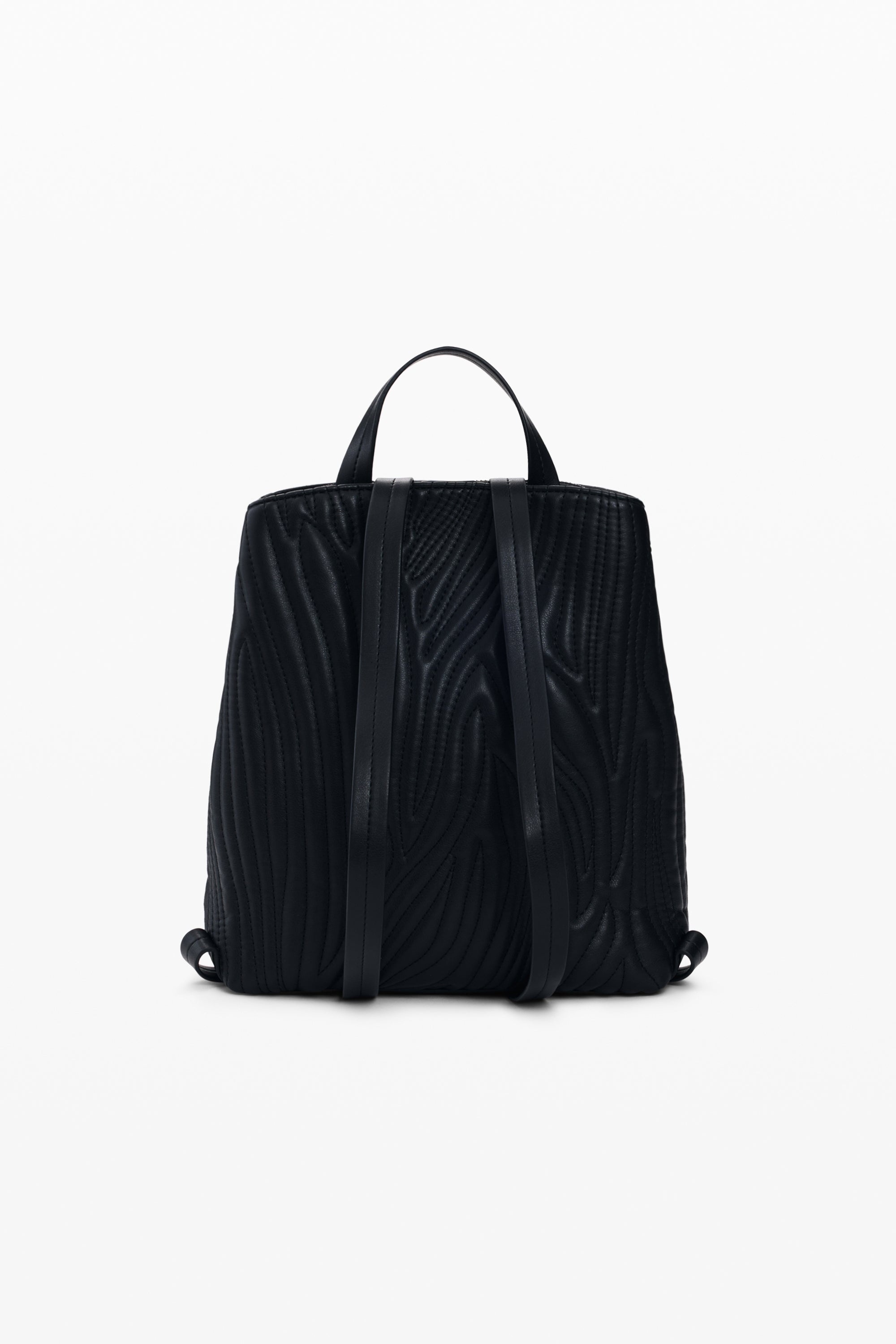 Rucsac mic din material texturat, cu mâner împletit și detaliu cu pandantiv pentru card.