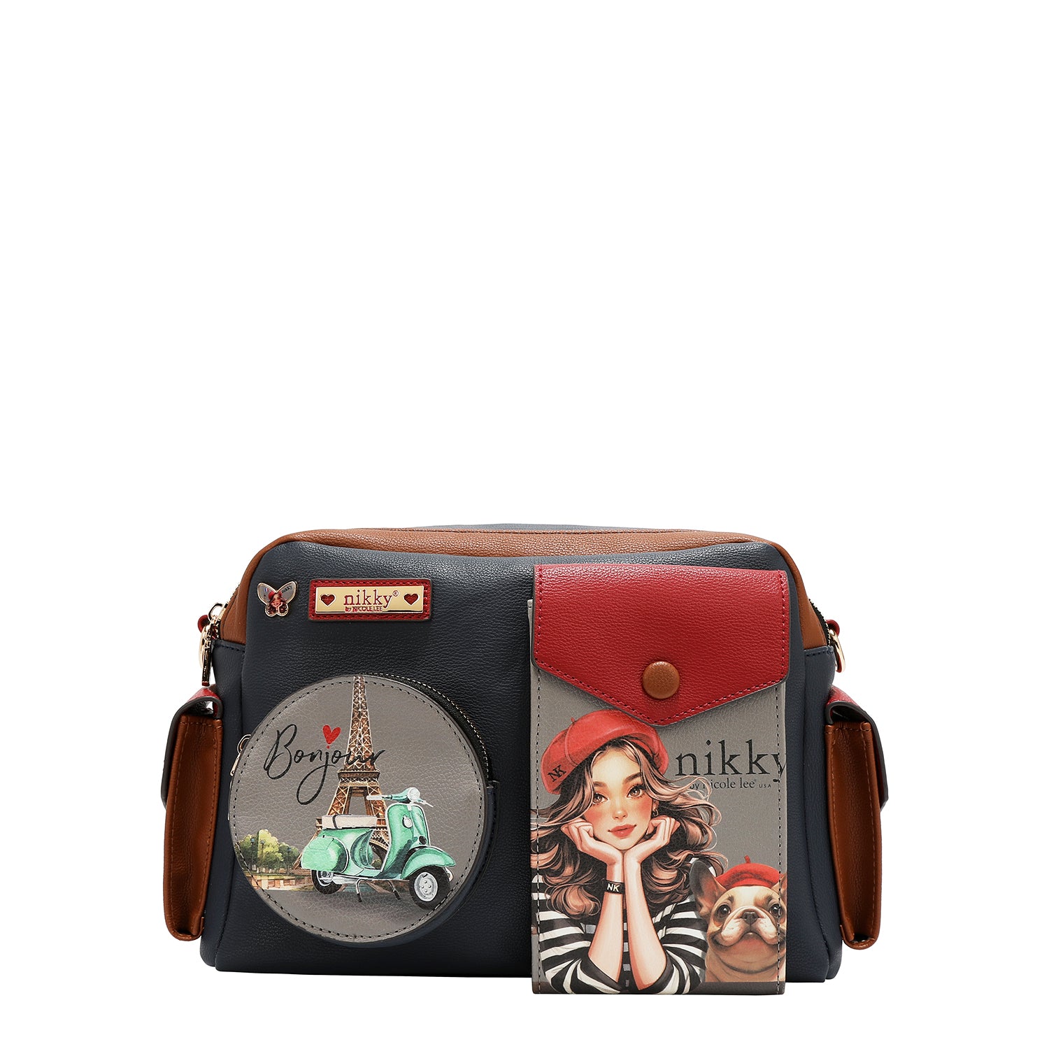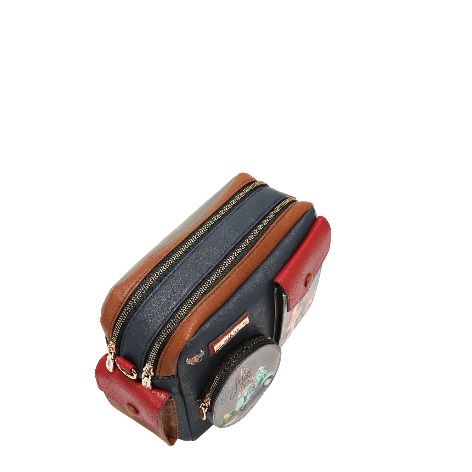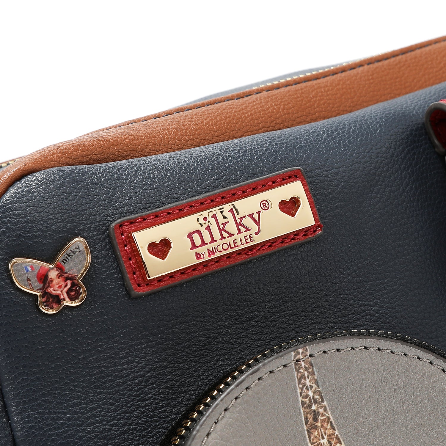 Plăcuță de identificare cu logo Nikky auriu în față.