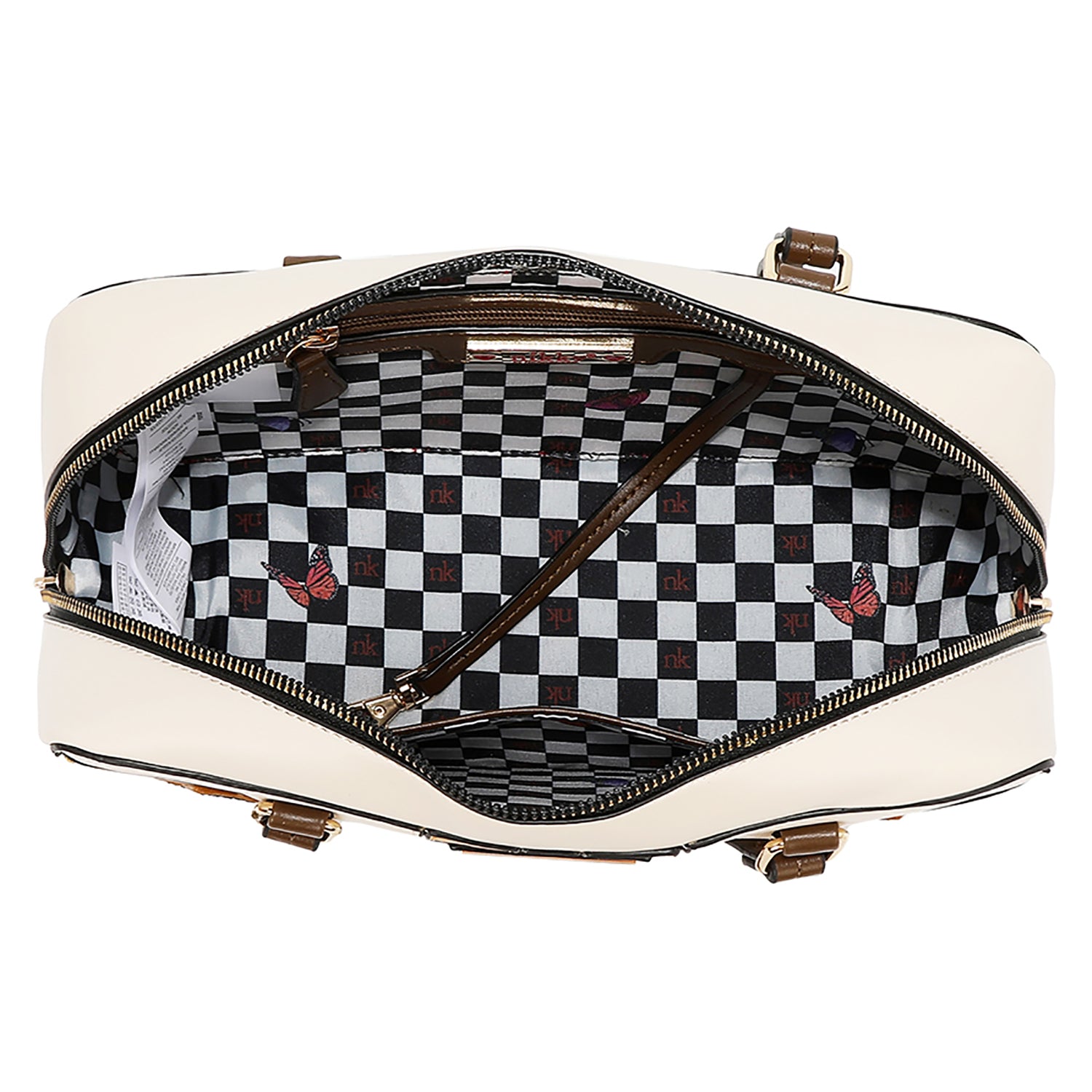 Un buzunar interior cu fermoar în perete, la spate, cu încuietoare din piele ecologică pentru breloc.