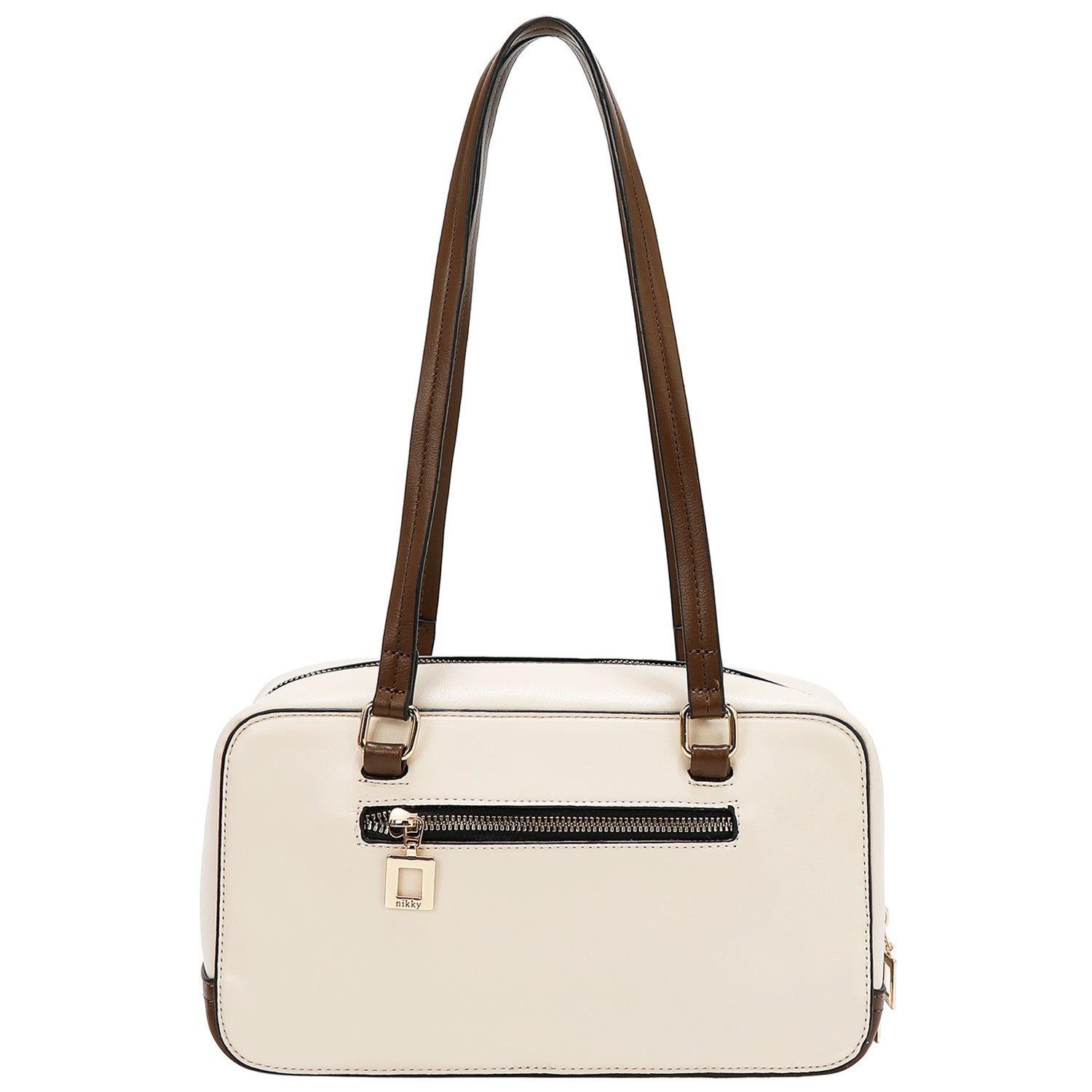 Închidere principală cu fermoar și mânere de formă pătrată.