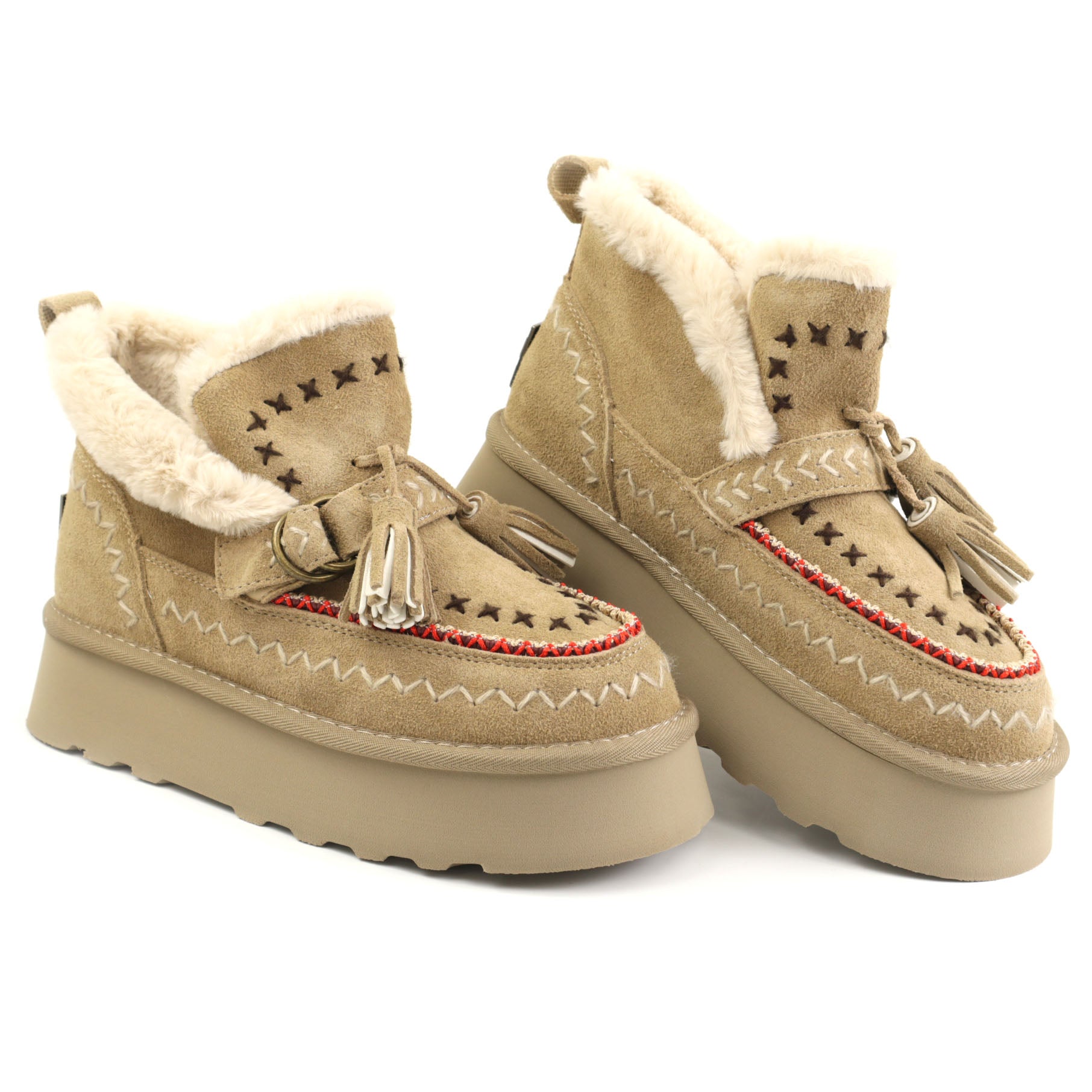 Fiecare pereche de ghete este confectionata manual, astfel încât sa poti fi sigura ca primesti un produs de cea mai înalta calitate. Materialul de piele întoarsa este moale, cald si ofera o izolatie termica excelenta pentru a-ti mentine picioarele confortabile în zilele reci.
