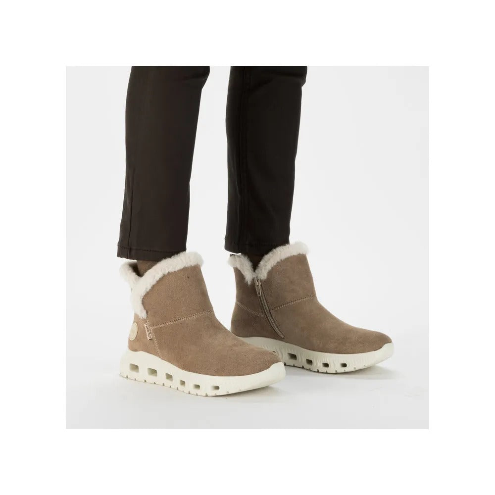 Aceste ghete RIEKER combină designul modern cu caracterul practic, decorate cu detalii subtile precum linii cusute și un logo discret al mărcii, creând un aspect impresionant. Închiderea șiretului împreună cu fermoarul lateral asigură o încălțare ușoară și se adaptează perfect formei piciorului. Brantul interior detasabil textil plăcut oferă confort, în timp ce talpa absorbantă de șocuri contribuie la stabilitate și confort la mers. Aceste ghete sunt o alegere excelentă pentru purtarea de zi cu zi, ideali pentru femeile care preferă încălțămintea elegantă și funcțională.