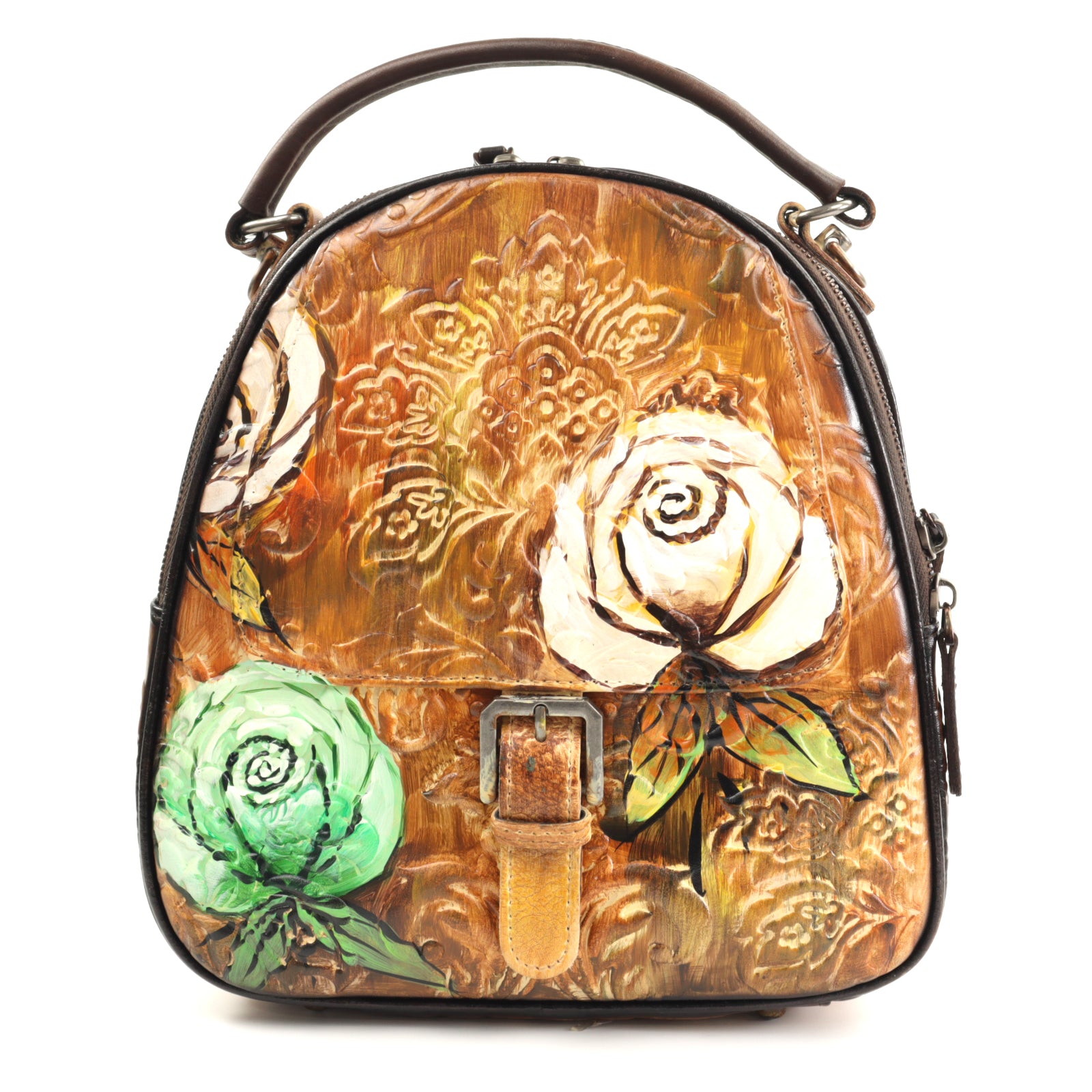 Alege genți și rucsacuri din piele naturală cu imprimeuri florale pentru un look fresh, funcțional și mereu în tendințe.